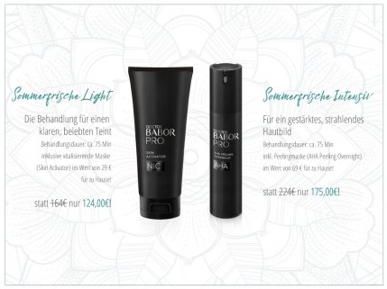 Passend zur neuen DOCTOR BABOR PRO Linie haben für Juli zwei Angebotsbehandlungen mit Produkten der Linie für Dich vorbereitet. Perfekt für den Sommer!