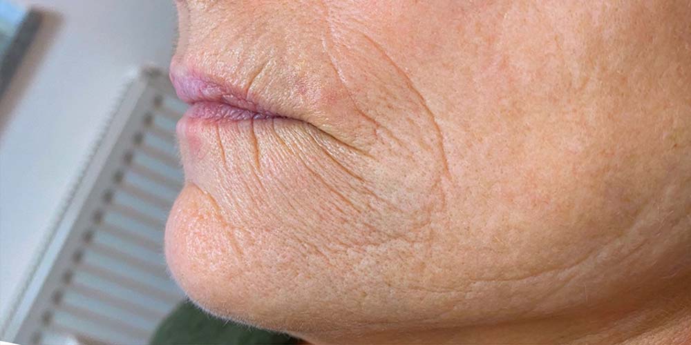 (besonders an der Augenpartie und der Oberlippen-Region, Gesichtskontur, Hals und Dekolleté) - Faltenbehandlung
