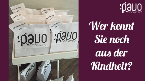 Wer kennt Sie noch aus der Kindheit? Wer sich noch erinnert, der weiß wie spannend es war die Tüte zu öffnen und sich überraschen zu lassen. Einige von Ihnen hatten vielleicht sogar schon mal das Vergnügen eine Pavo-Wundertüte zu öffnen und sich von dem tollen Inhalt zu überzeugen. Nun sind Sie wieder bei uns erhältlich, also greifen Sie zu solange der Vorrat reicht! Wir freuen uns auf Ihren Besuch – Ihr Team von Pavo Cosmetic.
